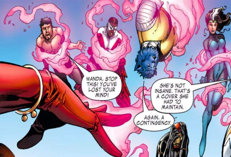 Feiticeira Escarlate isolada nas montanhas vivendo com Agatha Hackness sua mentora bruxa dimensional, após se isolar da humanidade por quase 100 anos, mais sabia que sozinha não podia derrotar o Titã Celestial, como sabia que todos haviam morrido talvez fosse a última mutante viva, decidida a recomeçar e alterar a realidade, porém todos morreram naquela realidade distorcida de suas mentes, com um feitiço poderoso e sua capacidade mágica restaurou novamente pela segunda vez o gene X em toda a terra, porém os genes de todos os heróis/vilões ou anti-heróis haviam renascido em seus descendentes e pessoas desconhecidas pu que tivessem uma linhagem avançada ao gene, para dar esperança novamente aquele mundo, após isso Feiticeira Escarlate acaba por criar uma descendente de seu poder em seguida usa seu poder se apagando daquele mundo para viver a realidade que sempre sonhou...